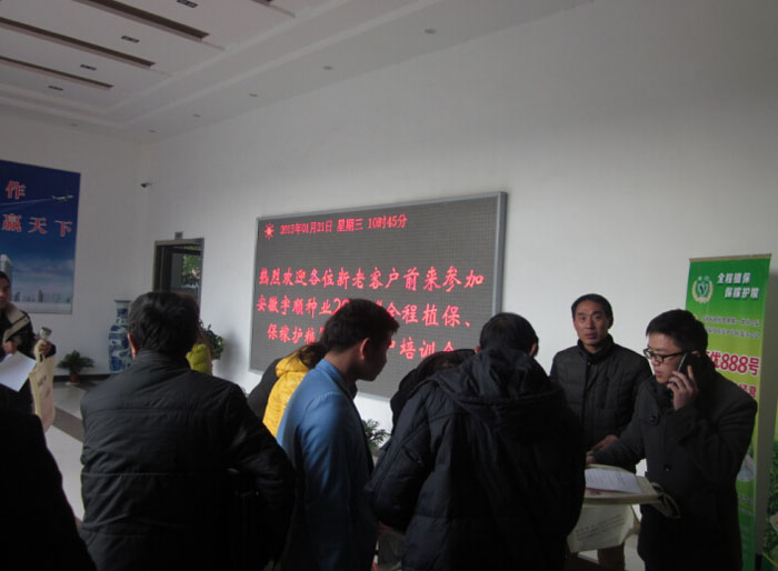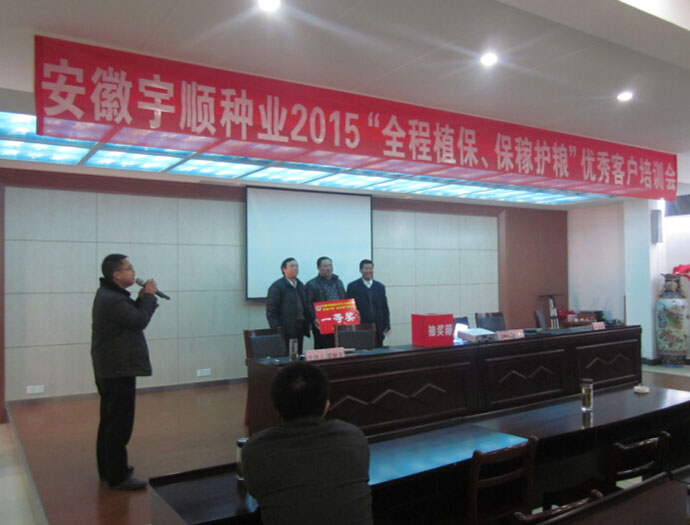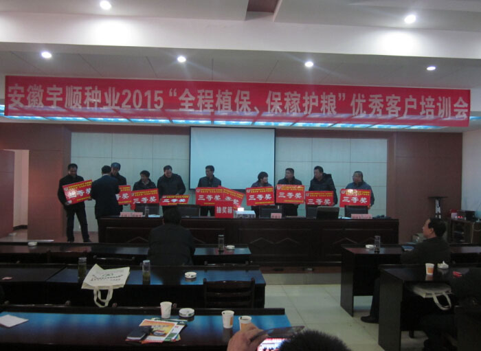 2015年元月21日至元月28日,我公司召開(kāi)了“安徽宇順?lè)N業(yè)2015‘全程植保、保稼護(hù)糧’優(yōu)秀客戶培訓(xùn)會(huì)”。此次培訓(xùn)會(huì)歷時(shí)8天,邀請(qǐng)了安慶各縣及周邊鄉(xiāng)鎮(zhèn)的種植大戶、農(nóng)戶、零售商等參加此次會(huì)議。會(huì)議主題圍繞我公司發(fā)展理念:“全程植保、保稼護(hù)糧”展開(kāi),為農(nóng)戶提供全方位的服務(wù),盡最大努力保證農(nóng)戶高產(chǎn)穩(wěn)產(chǎn)、增產(chǎn)增收。會(huì)議期間公司聘請(qǐng)植保專家全程為農(nóng)戶講授國(guó)家惠農(nóng)政策、種植技術(shù)及病蟲(chóng)害防治技術(shù),并設(shè)有抽獎(jiǎng)環(huán)節(jié),讓會(huì)議氣氛更加高漲。此次會(huì)議取得圓滿成功。
