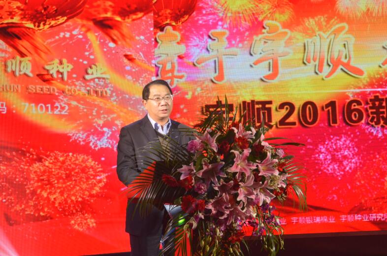 喜鵲登枝迎新歲,金猴起舞報福音。今天,我們相逢天域時代大酒店,其樂融融,歡聚一堂,共同慶祝2016新年的到來!值此之際,我謹(jǐn)代表安徽宇順種業(yè)開發(fā)有限公司并以創(chuàng)始人的身份向前來參加團(tuán)拜會的各位來賓、各位宇順家人致以新年最美好的祝福和最誠摯的問候!特別向仍堅守在新疆、海南一線的各位專家、宇順家人致以最崇高的敬意、最親切的感謝!