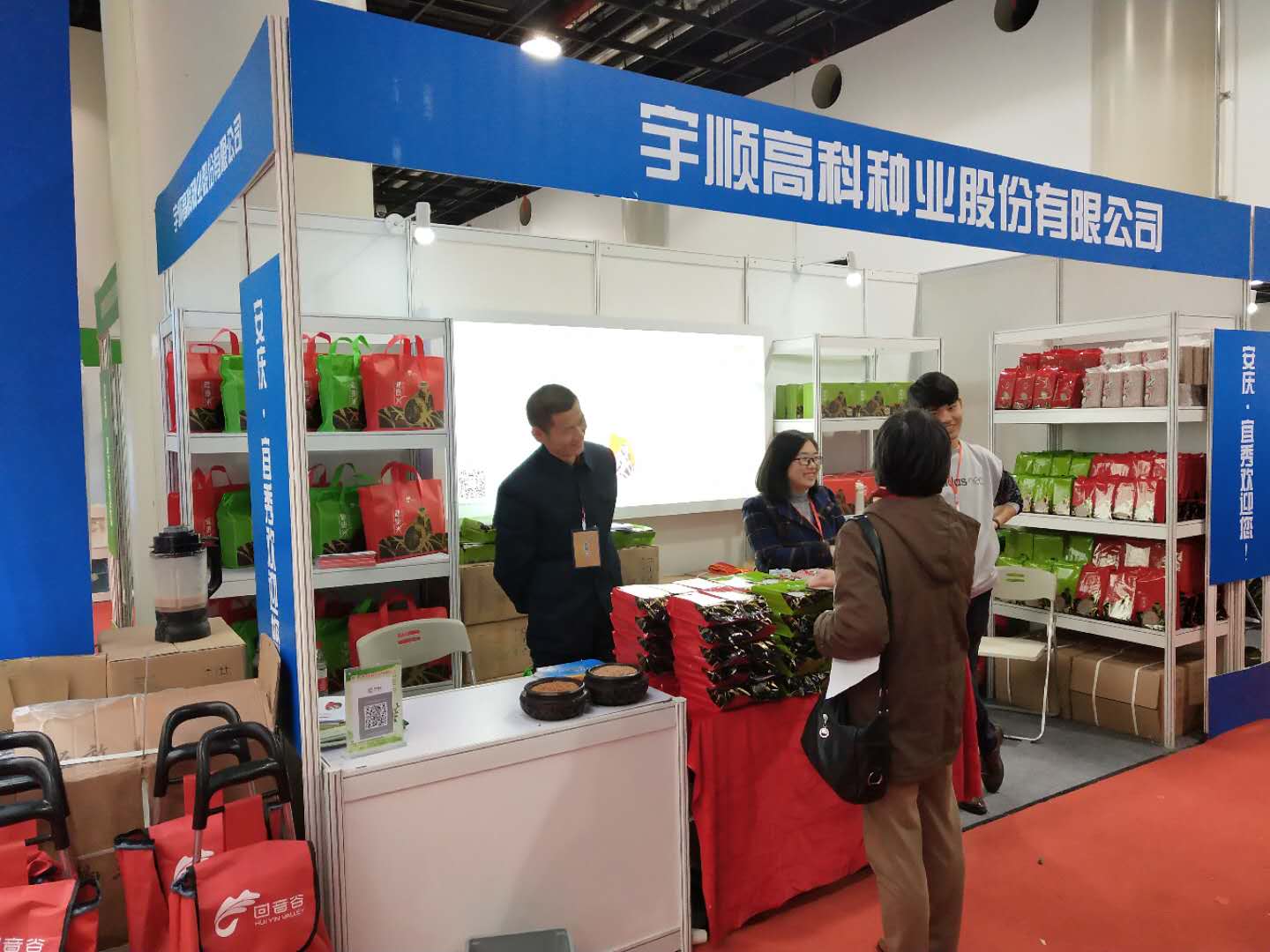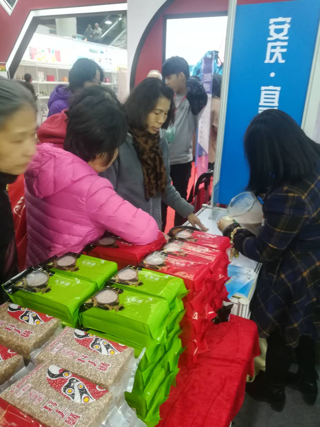 初冬時(shí)節(jié),乍寒還暖。2017年11月24日上午,第四屆安慶名優(yōu)農(nóng)產(chǎn)品(上海)交易會(huì)在上海市農(nóng)業(yè)展覽館AB館隆重舉行。我司受邀并組織團(tuán)隊(duì)參加了本屆交易會(huì)。 本屆交易會(huì)以“綠色安慶·健康食品·合作共贏”為主題,以龍頭企業(yè)、合作社和家庭農(nóng)場(chǎng)為主體,既面向上海市民,更面向大型超市、高等院校、大型企業(yè)。交易會(huì)上,在安慶市政府副市長(zhǎng)張小青、安慶市宜秀區(qū)政府副區(qū)長(zhǎng)周華斌的陪同下,上海市農(nóng)委領(lǐng)導(dǎo)親臨我司農(nóng)交會(huì)展示廳,詳細(xì)詢問紅米生產(chǎn)及市場(chǎng)銷售情況并對(duì)公司業(yè)務(wù)發(fā)展給予指導(dǎo)。 本屆交易會(huì)我司重點(diǎn)展示了公司正在生產(chǎn)的“回音谷紅米”,“嬉子紅健康米”,“回音谷優(yōu)選健康米”,“回音谷尚選健康米”等品種。